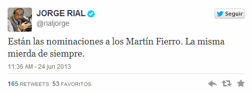 El primero que alzó su voz contra los “devaluados” premios fue el periodista Jorge Rial, a través de Twitter, quien se mostró muy duro, como es habitual.